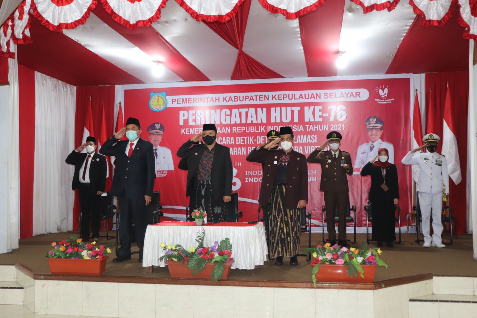 3. Upacara Detik-Detik Proklamasi Kemerdekaan RI dan Pengibaran Bendera Merah Putih di Halaman Utama Kantor Bupati Kep. Selayar. Pengadilan Agama Selayar mengirimkan tim sejumlah 8 orang terdiri dari panitera, sekretaris, panitera muda, kasubag, dan staf. Upacara dimulai pukul 08:00 WITA dan berakhir pada pukul 09:00 dengan rintikan hujan. Bupati Kepulauan Selayar, H. Muhammad Basli Ali bertindak sebagai instruktur upacara.
