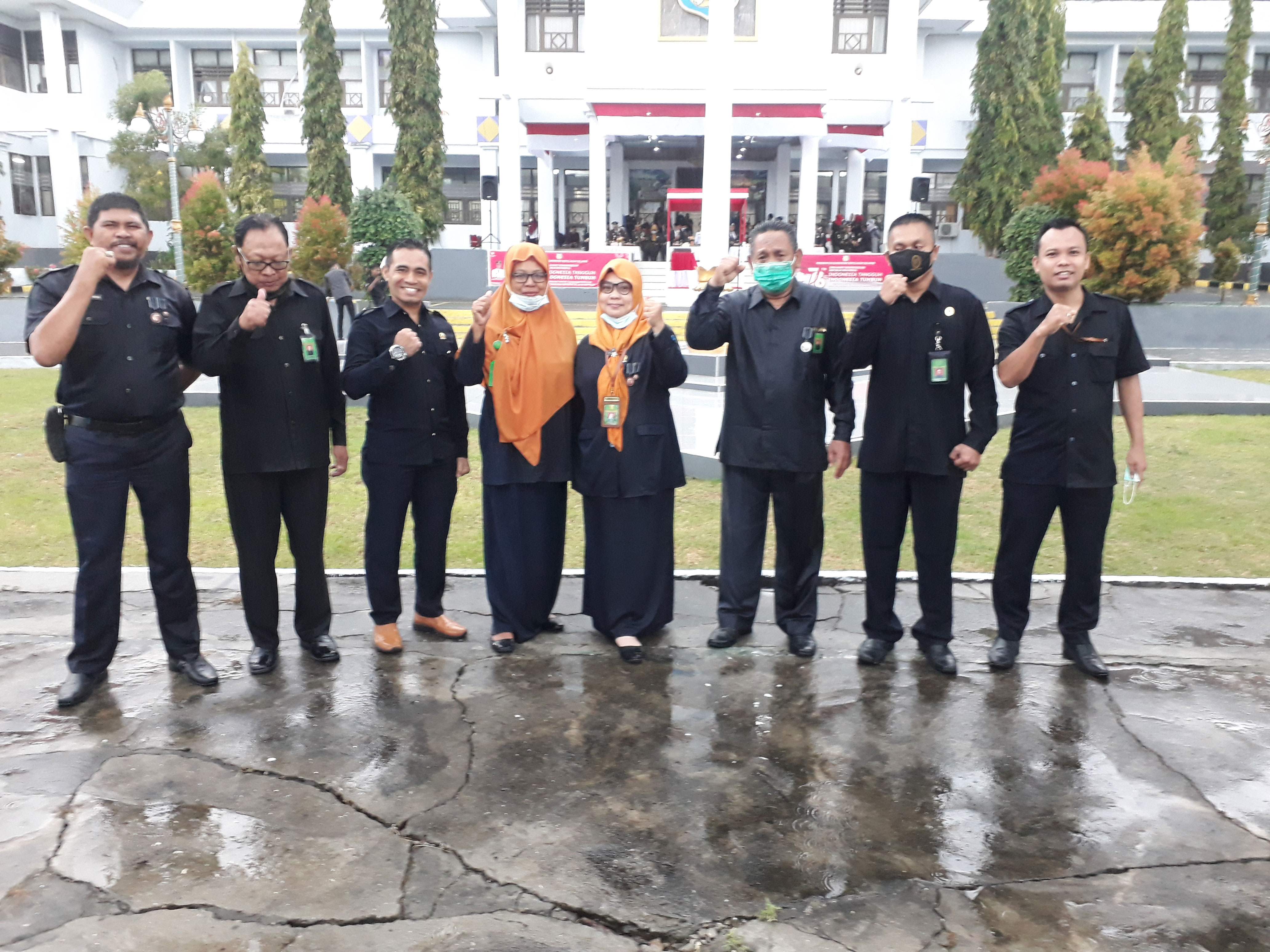 6. Pada pukul 16:30 WITA, tim dari Pengadilan Agama Selayar mengikuti kembali Upacara Penurunan Bendera Merah Putih di Halaman Utama Kantor Bupati Kep. Selayar. Upacara pada kali ini penuh perjuangan dikarenakan selama upacara diguyur hujan deras. Namun hal tersebut tidak melunturkan kesemangatan tim dalam mengikuti upacara. Wakil Bupati Kep. Selayar, H. Saiful ARif, S.H., bertindak sebagai instruktur upacara.