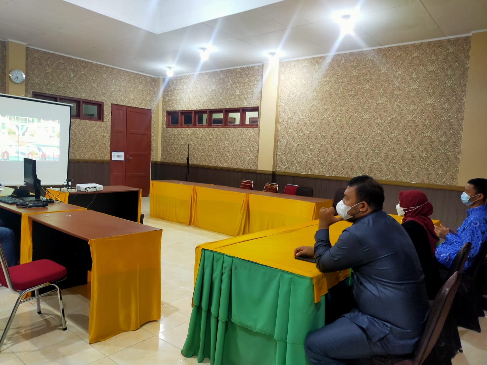 7. Pukul 18:00 WITA di ruang media center Pengadilan Agama Selayar, Hakim Pengadilan Agama Selayar, Rini Fahriyani Ilham, S.H.I., beserta kasubag mengikuti secara daring Upacara Penurunan Bendera Merah Putih dari istana merdeka.
