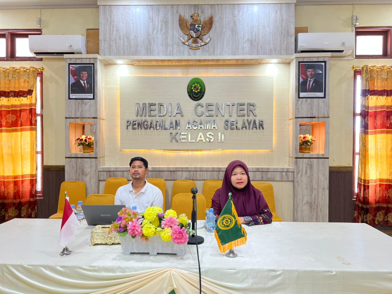 Bertempat di Ruang Media Center Pengadilan Agama Selayar, YM Rahmayani Nashihatun Aminah, S.H., dan YM Abdi, S.H., selaku Hakim pada Pengadilan Agama Selayar mengikuti secara daring