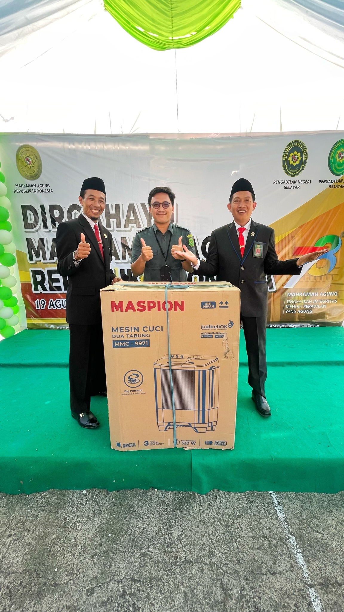 Sabtu, 19 Agustus 2023 selepas seluruh aparatur pada Pengadilan Negeri Selayar dan Pengadilan Agama Selayar dan Dharmayukti Karini Cabang Selayar usai menyelenggarakan upacara Peringatan HUT Mahkamah Agung RI ke-78, seluruh peserta menuju halaman belakang Kantor Pengadilan Negeri Selayar untuk merayakan puncak peringatan HUT Mahkamah Agung RI ke-78 yang telah disediakan panggung dan penataan meja oleh panitia sebelumnya dengan konsep bertajuk ramah tamah.