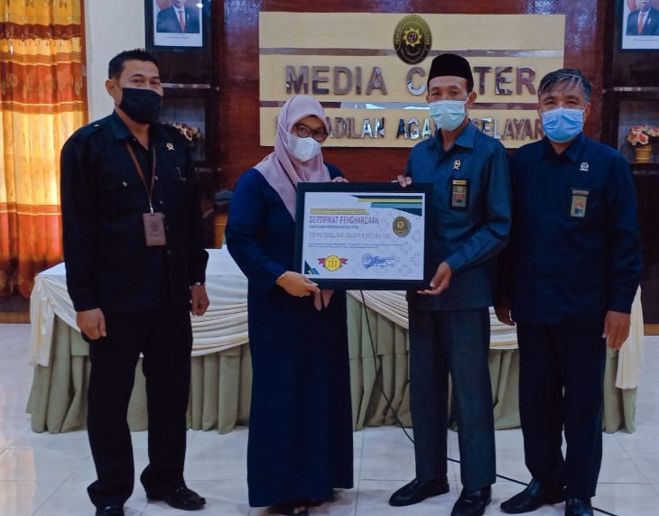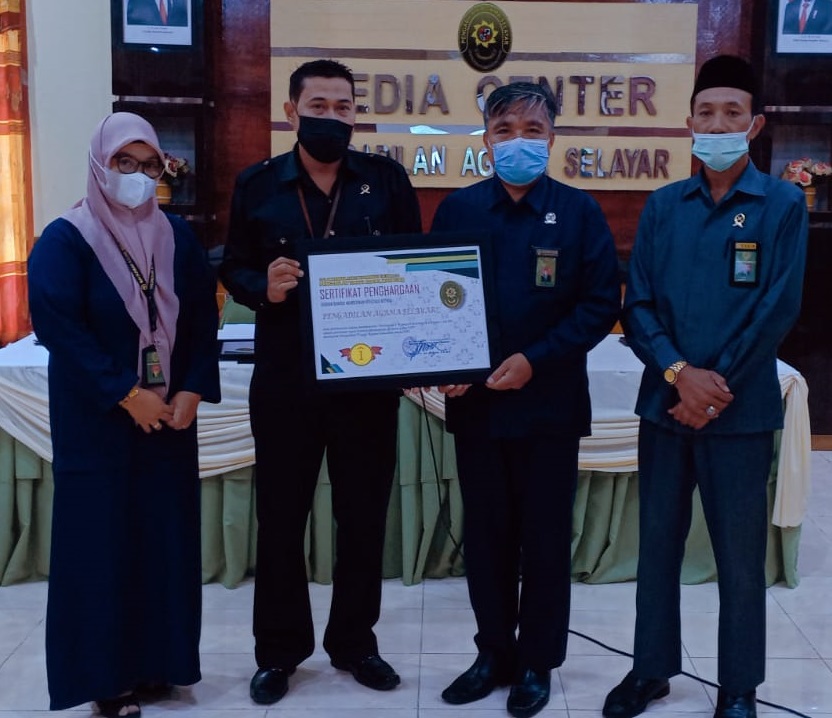 Sertifikat penghargaan tersebut diserahkan oleh Ketua dan Wakil Pengadilan Agama Selayar kepada Panitera dan Sekretaris Pengadilan Agama Selayar.